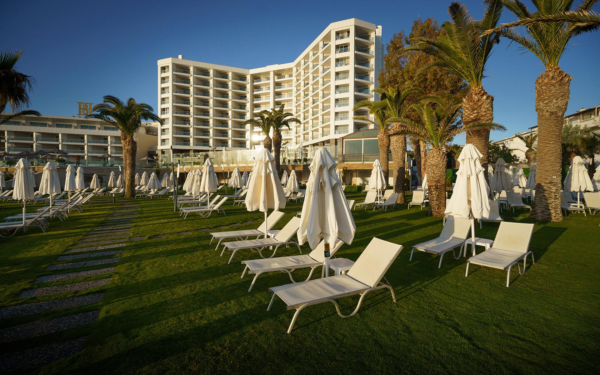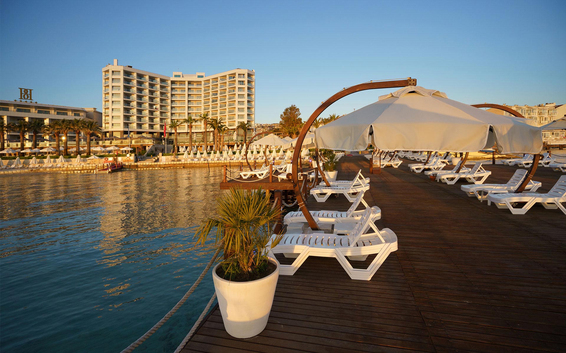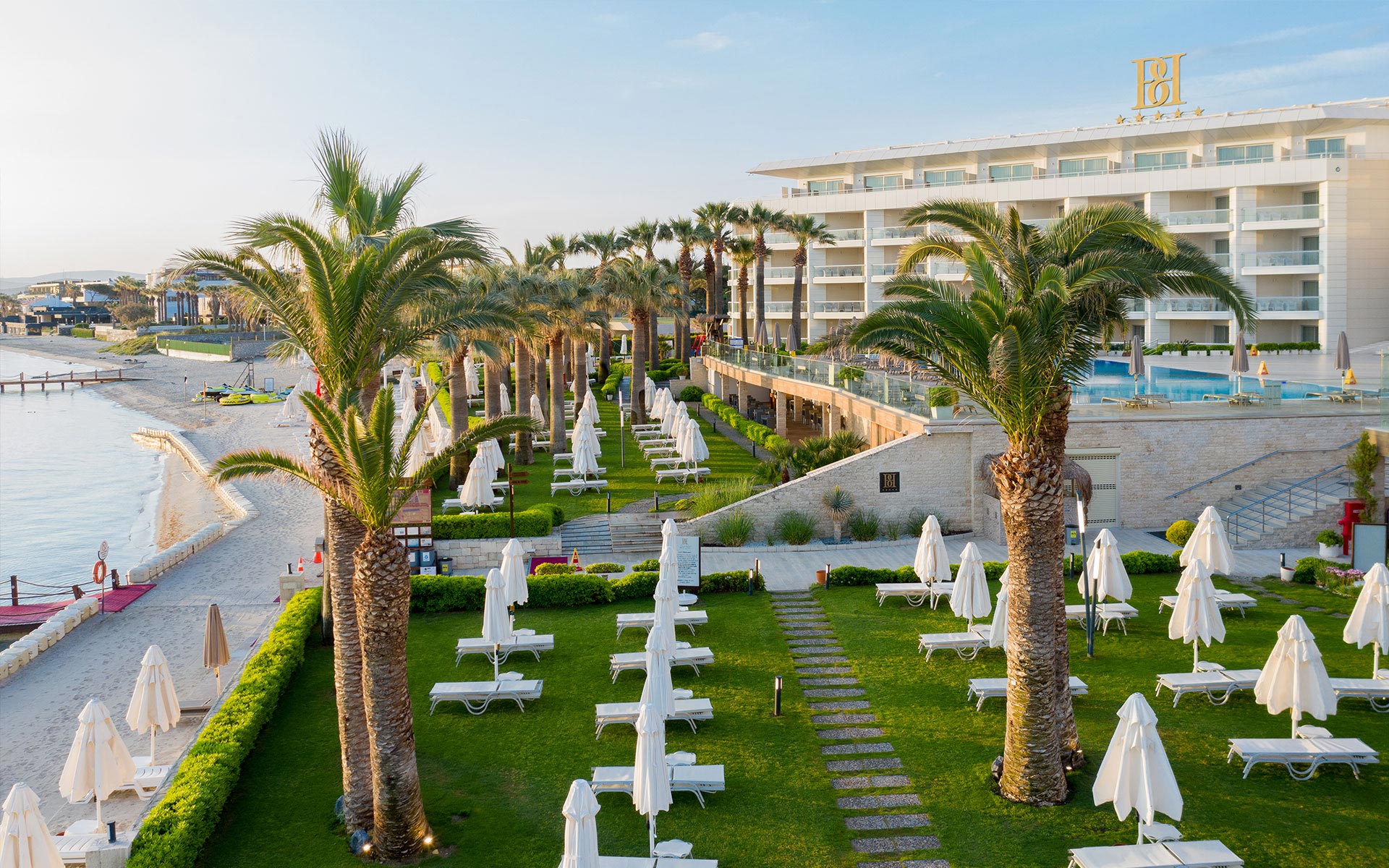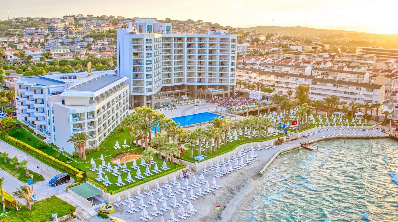 Denize birkaç adım uzaklıkta, kendine ait plajı ve açık havuzu ile Çeşme'de 9.700 m2 alanda kurulu olarak muhteşem bir tatil fırsatı sunmaktadır.
